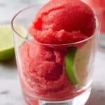 This 3-Ingredient Watermelon Sorbet is a refreshing, easy-to-make frozen dessert perfect for hot days. Made with simple natural ingredients like watermelon, a liquid sweetener, and lime juice, it delivers a deliciously sweet and tangy flavor with a smooth, creamy texture. It’s naturally dairy-free and ideal for a quick homemade treat that you can customize with your favorite sweetener.