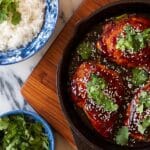 This chicken pairs perfectly with fluffy jasmine rice, which soaks up all that glorious sauce. I also serve it alongside crisp sliced baby cucumbers and mini bell peppers to cut through the richness with a refreshing crunch.