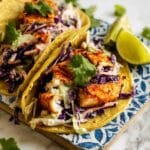 I’ve frozen battered and fried fish before with decent results—wrap each piece tightly in plastic wrap and foil. When you’re ready to eat, thaw overnight in the fridge and refry or bake at high heat to crisp it back up. Just keep in mind the slaw and creamy sauce don’t freeze well, so make fresh when serving.