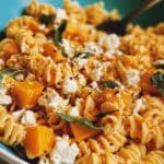 Keywords: baked feta pasta, butternut squash pasta, sage garlic pasta, roasted squash with feta, vegetarian pasta recipe