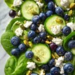 Keywords: blueberry salad, pistachio salad, spring salad, feta cheese salad, healthy salad, fresh salad, no-cook salad