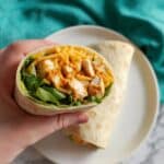 If you have leftovers, I recommend wrapping each Buffalo Chicken Wrap tightly in plastic wrap or foil and refrigerating them in an airtight container. They’re best eaten within 2 days to maintain freshness, especially to keep the tortilla from getting too soggy.
