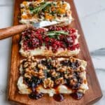 Keywords: Butter board, appetizer, finger food, party food, butter spread, toppings, fig jam, walnuts, honey, cranberry, pistachios, roasted garlic, herbs, berry jam, lemon zest, pomegranate