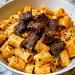 This Cajun Steak Tips in Cheesy Rigatoni Parmesan Sauce Recipe has become one of my go-to dishes when I want something that feels indulgent but comes together quickly. The combination of warming spices, creamy cheese sauce, and perfectly cooked steak is just unbeatable. I’m confident once you try this recipe, it will become a favorite in your kitchen too – and you’ll have a delicious, crowd-pleasing meal ready whenever you need it.