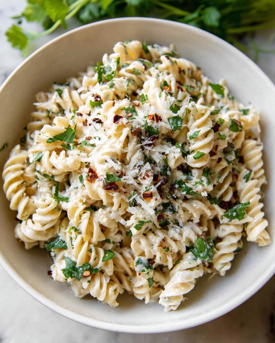 For garnishes, I usually sprinkle a little extra Parmesan and fresh cracked black pepper right before serving. Sometimes I add chopped fresh basil or parsley for a burst of aroma and color—fresh herbs really elevate this simple dish to something special. A drizzle of good olive oil can also add a lovely richness if you’re in the mood.