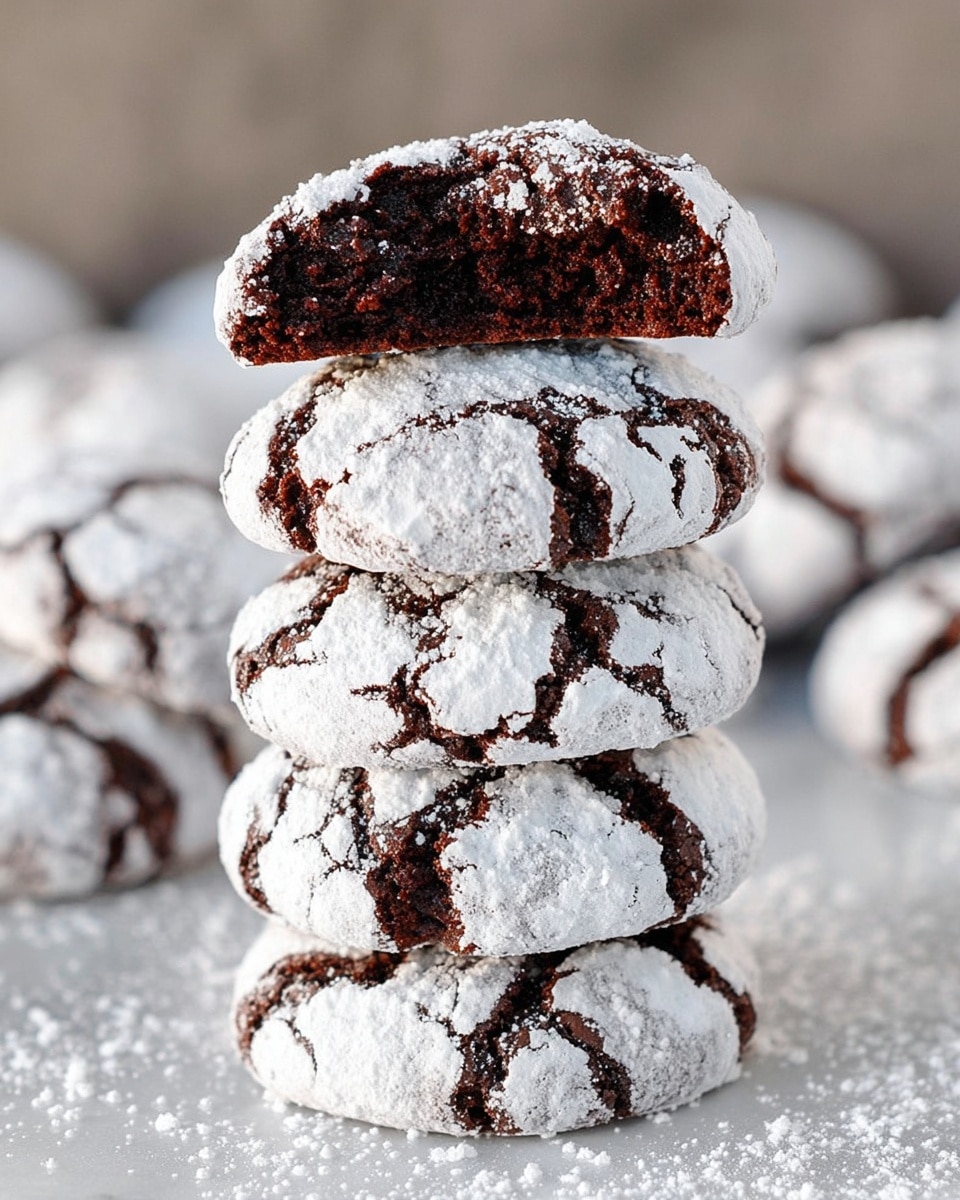 Delight in these rich, fudgy Chocolate Crinkle Cookies featuring a crackly powdered sugar coating that beautifully contrasts the soft, chewy interior. Perfect for any occasion, these cookies deliver intense cocoa flavor with a tender texture, made easy with simple pantry ingredients and baked to perfection.