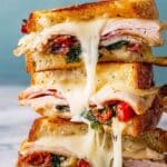 To reheat, I usually slice the leftover sandwich and toast it in a pan or oven until the cheese melts and the bread crisps up again. Avoid the microwave if you want to keep the crust from getting chewy or soggy – reheating slowly makes a big difference.