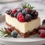 This Christmas No-Bake Cheesecake Slab is a festive and luscious dessert featuring a crunchy Biscoff biscuit crust and a smooth, creamy no-bake cheesecake filling. Topped with a homemade Chantilly cream and adorned with fresh seasonal berries, orange slices, and rosemary sprigs, it’s the perfect make-ahead holiday centerpiece that requires no oven and minimal effort.