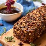 Keywords: Christmas nut roast, mushroom gravy, cranberry sauce, vegetarian Christmas recipe, festive nut roast