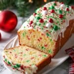 Keywords: Christmas bread, festive bread, quick bread, buttermilk bread, holiday baking, sprinkle bread, colorful bread, vanilla bread