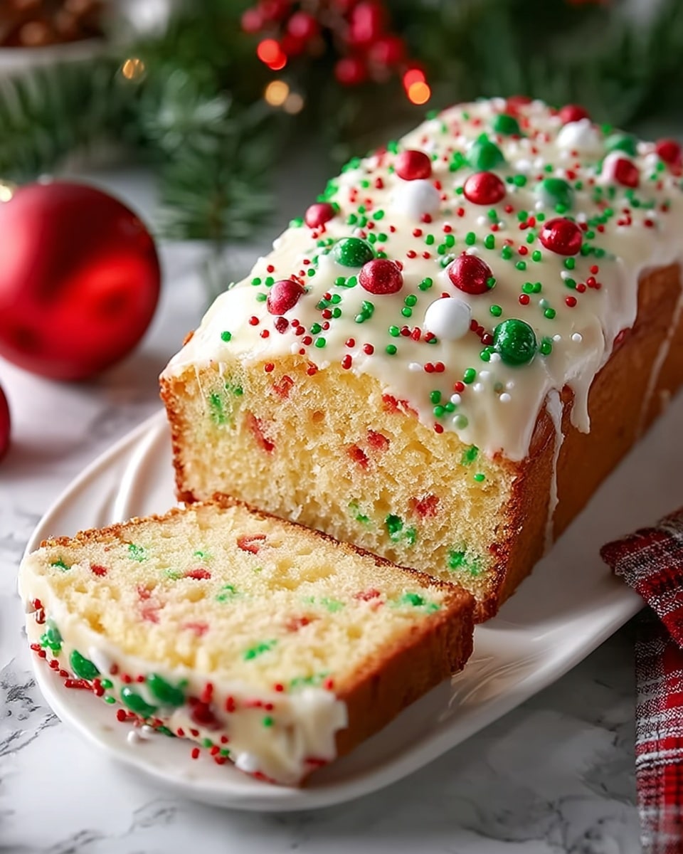 Celebrate the festive season with this delightful Christmas Sprinkle Buttermilk Bread, a moist and tender quick bread studded with vibrant red and green sprinkles that add a fun crunch and a burst of color. Perfect for holiday breakfasts, brunches, or as a cheerful dessert, this bread combines the tangy richness of buttermilk with the warm aroma of vanilla and the buttery sweetness of a classic cake-like crumb. Topped with coarse sugar and extra sprinkles, it’s an irresistible treat that brightens up any holiday table.