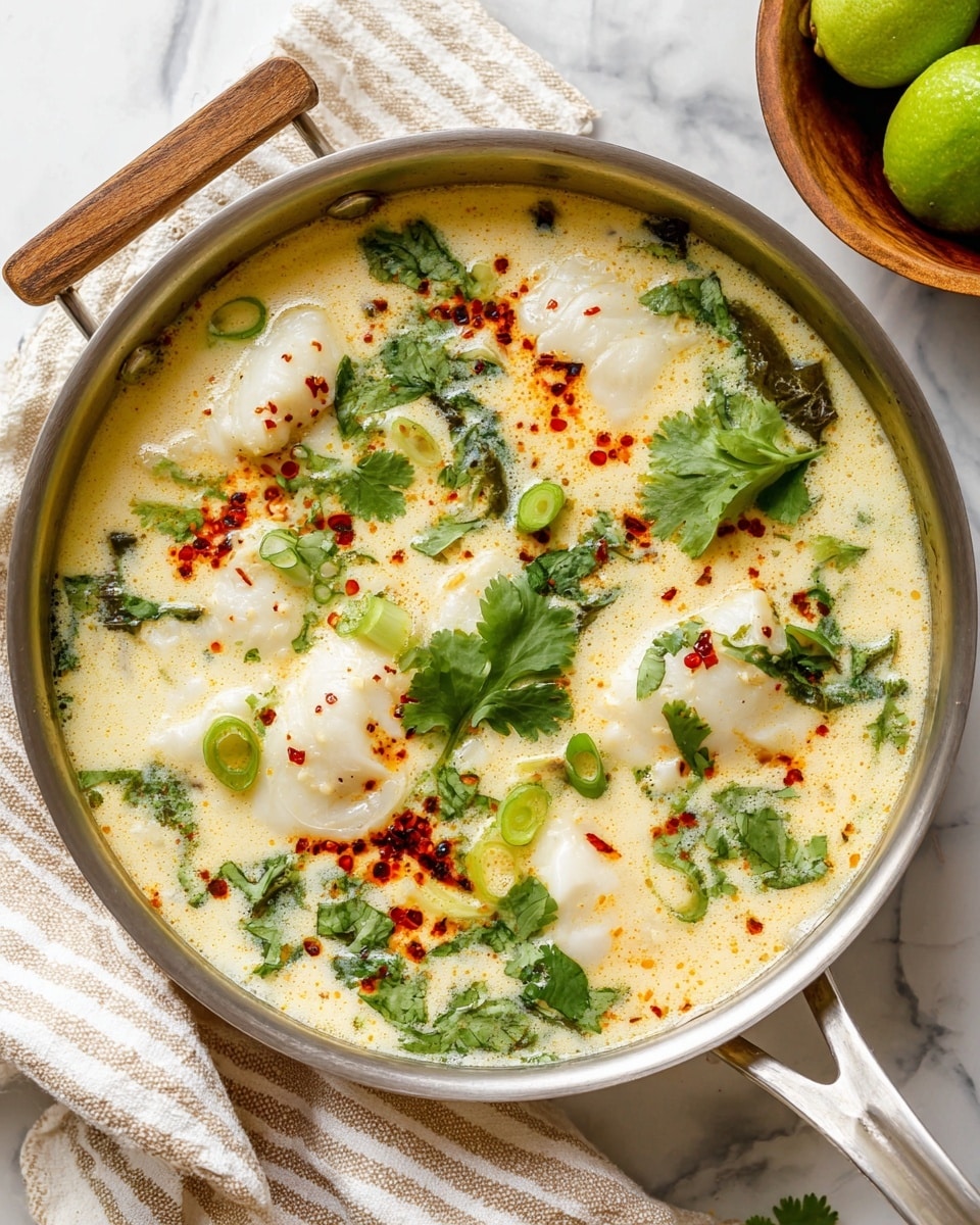 Keywords: coconut milk fish, poached fish, cod recipe, Southeast Asian fish dish, coconut seafood, healthy fish recipe
