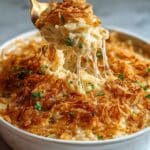 This Comforting French Onion Chicken Rice Bake is a hearty, flavorful casserole perfect for family dinners. Combining tender shredded chicken, fluffy rice, rich soups, creamy sour cream, and melted cheese, this dish is topped with crispy French fried onions for a delightful crunch. Easy to prepare and bake, it offers a cozy meal that everyone will love.