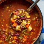 - Vegetarian version: Swap out the meats for plant-based sausage and add extra beans and veggies like bell peppers or mushrooms — it still turns out hearty and flavorful.