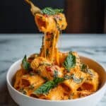 I store leftover creamy tomato garlic pasta in an airtight container in the fridge for up to 3 days. Before sealing, make sure the pasta has completely cooled to avoid condensation, which can make the sauce watery. When you’re ready to eat, you’ll find it still tastes rich and delicious, though the texture might soften slightly.