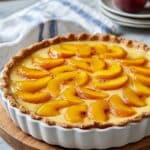 Keywords: custard peach pie, peach pie recipe, summer desserts, creamy peach pie, baked custard pie