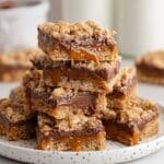 - Ensure the caramel mixture is warm when pouring over the crust, so it spreads evenly but not too hot to melt the oats excessively.