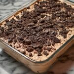 This Dirt Cake Recipe is one of those fun, nostalgic desserts that never fails to bring a smile. It’s rich, chocolatey, and layered with textures that remind me a bit of childhood birthday parties and family gatherings. The combination of moist chocolate cake with creamy pudding, fudgy goodness, and crunchy Oreos makes each bite feel indulgent without being overly fussy.