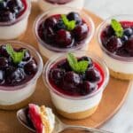 Freezing cheesecake cups is a bit tricky since the whipped cream can change texture, but I’ve had decent results freezing them without toppings. I recommend freezing before adding fruit or ganache, then thawing overnight in the fridge. When thawed, the texture is softer but still enjoyable—perfect if you want to prep way ahead.