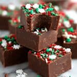 This Easy Christmas Fudge recipe is a quick and delightful holiday treat combining creamy sweetened condensed milk, rich semi-sweet chocolate chips, butter, and vanilla extract, topped with festive Christmas sprinkles. Perfect for gifting or enjoying throughout the holiday season, this no-bake fudge requires minimal ingredients and effort, making it an accessible and delicious dessert for all skill levels.