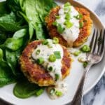 For special occasions, I sometimes serve these crab cakes stacked with layers of avocado slices and a drizzle of the dipping sauce between. It’s fancy but easy and makes a stunning presentation. Another fun idea is to serve mini crab cakes as appetizers with toothpicks and a variety of dipping sauces for guests to choose from.