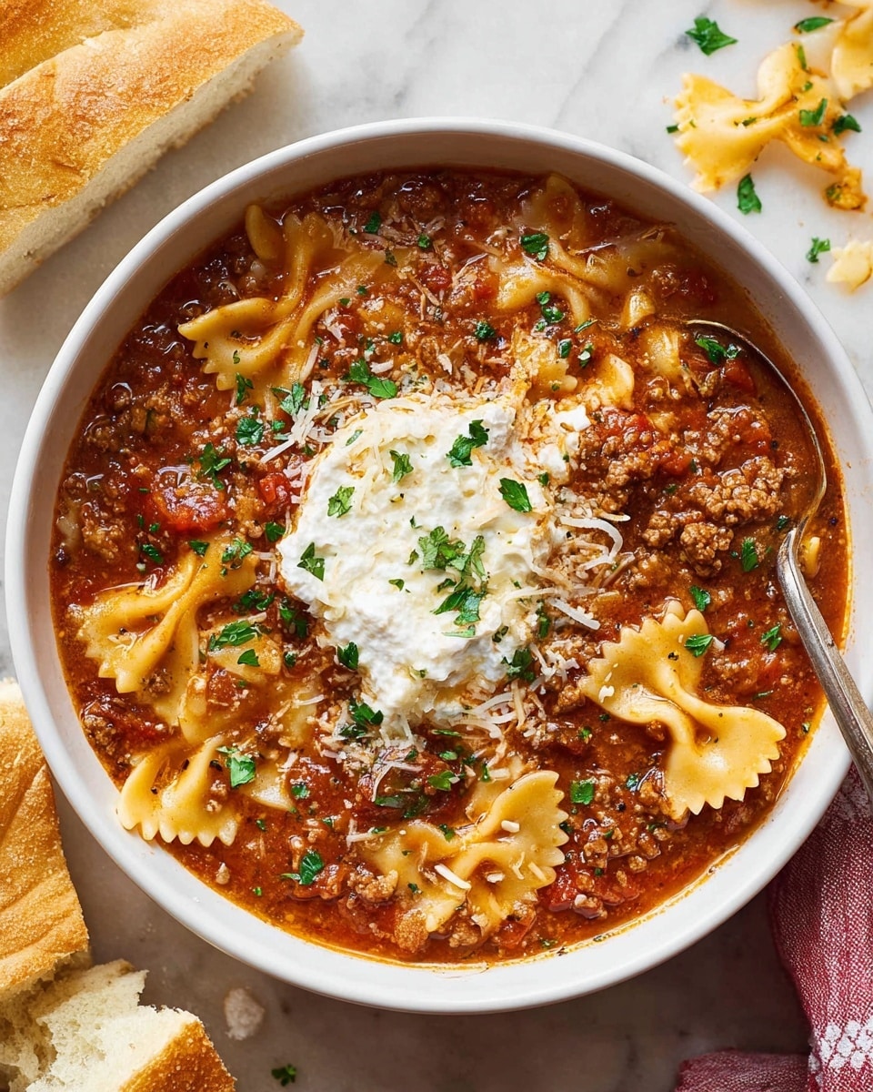 If you’re craving hearty comfort food but want it quick and fuss-free, I seriously can’t recommend this Easy Lasagna Soup Recipe enough. It hits all the right notes with melty cheese, savory beef, and that rich tomato broth that warms you from the inside out. Once you try it, I bet it’ll become one of your go-to weeknight dinners—just like it did for me. So grab that pot, invite some friends or family, and enjoy every comforting spoonful of this delightful soup!