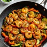 I don’t typically freeze this shrimp and vegetable skillet because shrimp’s texture can get a little off after freezing and reheating. But if you do freeze it, make sure to flash freeze first by spreading it on a baking sheet and then transfer to a freezer-safe bag to prevent clumping.
