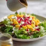 A vibrant and festive pomegranate walnut salad featuring fresh spring mix greens, sweet persimmons, crunchy walnuts, and tangy feta cheese. Tossed with a homemade honey mustard dressing, this salad is perfect for holiday gatherings or any occasion that calls for a refreshing and colorful dish.