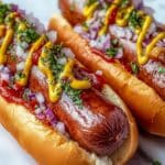 For special occasions, I like to transform these into a “build-your-own” hot dog bar—laying out all the toppings, sauces, and buns so everyone can customize to their liking. Serving in individual mini foil trays or on colorful plates adds a fun vibe to backyard parties too!