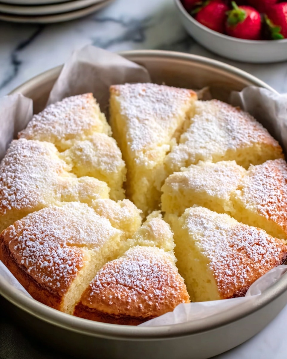 Butter your pan generously to prevent sticking — I prefer a round 8-inch cake pan for a classic shape. Pour the batter in evenly, then sprinkle the remaining granulated sugar on top to create that irresistible crispy crust. Bake at 350°F (175°C) for about 40 to 45 minutes, checking doneness with a toothpick inserted in the center. When it comes out clean (or with a few moist crumbs), you’re good to go.