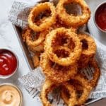 Yes, baking is possible but won’t give quite the same crunch as frying. To bake, place the coated onion rings on a greased baking sheet, spray lightly with oil, and bake at 425°F for 15-20 minutes, flipping halfway through. For best results, use an air fryer if you have one.