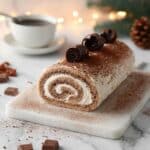 I’ve frozen this Gourmet Tiramisu Yule Log Cake Recipe wrapped well in cling film and foil, and it comes out almost as fresh when thawed overnight in the fridge. Just be careful when cutting into it after freezing—use a sharp knife warmed in hot water for smooth slices.