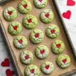 These festive Grinch Cake Mix Cookies are a fun and easy holiday treat made with a vanilla cake mix and bright green food coloring to capture the whimsical spirit of the Grinch. Soft and chewy on the inside with a sweet powdered sugar coating, they are perfect for holiday parties or a festive family baking activity. The candy hearts or sprinkles add a playful, colorful touch that mimics the Grinch’s mischievous personality.
