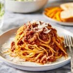 This classic Spaghetti Bolognese recipe features a rich, slow-simmered meat sauce made with ground beef, fresh vegetables, tomatoes, and herbs. Simmered for hours to develop deep flavors and served over perfectly cooked spaghetti, this hearty Italian dish is a comforting family favorite that’s easy to prepare and perfect for batch cooking or freezing for later.