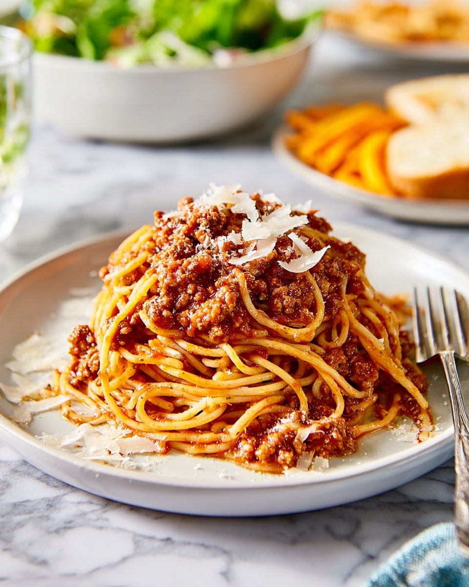 Keywords: Spaghetti Bolognese, classic Italian pasta, ground beef sauce, slow simmered Bolognese, easy family dinner, hearty pasta dish, homemade Bolognese sauce