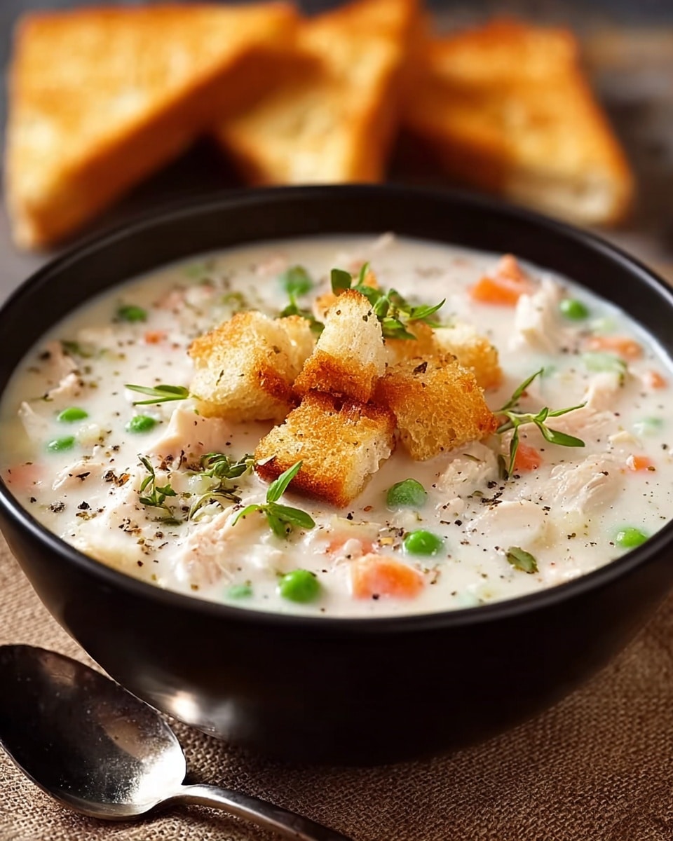 - Serve: Ladle the hot cream of chicken soup into bowls and top with the freshly made croutons for a delightful crunch.
