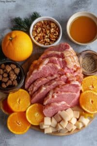 - Orange slices: Fresh slices for roasting add bright citrus aroma and also look pretty on the ham.