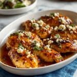 You can freeze cooked Hot Honey Feta Chicken Recipe, but I recommend freezing the chicken and sauce separately if possible. Wrap the chicken tightly in foil or plastic wrap, then place in a freezer bag for up to 2 months. When you thaw the chicken, add fresh crumbled feta and herbs after reheating for the best texture.