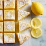 Keywords: Meyer lemon bars, lemon dessert, lemon bars recipe, citrus bars, baked lemon bars, shortbread crust, lemon custard
