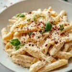 I almost always top my pasta with fresh chopped parsley. It adds a pop of color and a subtle herbaceous freshness that cuts through the creamy sauce. Sometimes, I’ll toss in a sprinkle of crushed red chili flakes for a bit of heat or some extra Parmesan for that cheese lover’s dream effect.