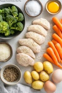 This Parmesan Crusted Chicken Sheet Pan Dinner is a simple yet delicious one-pan meal featuring tender chicken breasts coated in a crispy Parmesan and breadcrumb crust, roasted alongside baby potatoes, carrots, and broccoli. It’s perfect for a healthy, flavorful weeknight dinner with minimal cleanup.