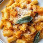- Serve: Plate the creamy butternut squash pasta and garnish with extra Parmesan cheese and fresh sage leaves if desired. Serve warm and enjoy your comforting fall-inspired meal.