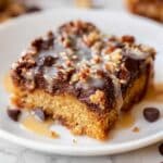 - Rest and Serve: Allow cake to sit for 15-20 minutes for the glaze to absorb fully. Serve warm, optionally topped with whipped cream or ice cream.