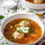 Romanian Meatball Soup, known as Ciorba de Perisoare, is a traditional and comforting soup featuring tender pork meatballs simmered in a flavorful broth enriched with vegetables, herbs, and a touch of lemon juice for a bright, tangy finish. This hearty soup is typically enjoyed as a warming appetizer or a light main course.