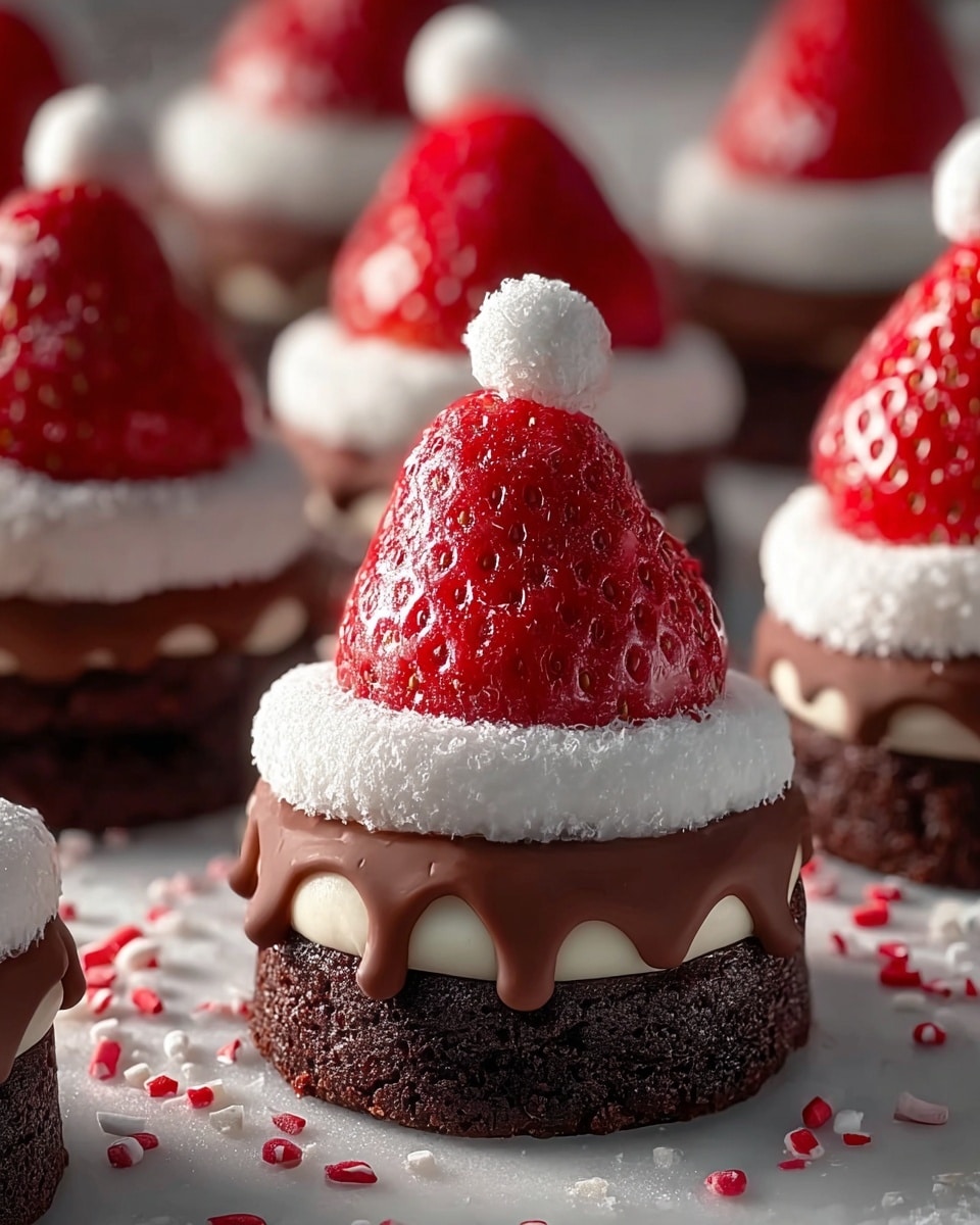 Santa Hat Brownie Bites are a festive and delightful holiday treat featuring rich brownie bases topped with fresh strawberries and fluffy vanilla cream, resembling charming Santa hats. These bite-sized desserts combine the fudgy texture of brownies with the lightness of whipped cream and a burst of fruity freshness, making them perfect for holiday parties and winter celebrations.