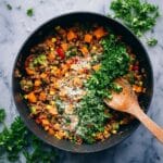 Definitely! Replace the sausage with your favorite plant-based protein like crumbled tofu or tempeh sausage, and adjust the seasoning to add more depth. It won’t be quite the same, but still delicious and filling.
