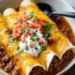 These Ground Beef Enchiladas are a comforting and flavorful Mexican-inspired dish featuring seasoned ground beef wrapped in tortillas, smothered with rich enchilada sauce and melted cheese. Perfect for a family dinner, they’re topped with sour cream for a cool, creamy finish.