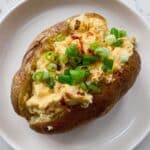 Russet potatoes are preferred for their starchy and fluffy texture, but Yukon Gold potatoes can work too, although the skin won’t crisp quite as much. Just adjust baking time slightly if needed.