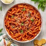 - Serve: Remove the skillet from heat and portion the pasta into serving bowls. Garnish with additional chopped basil or parsley and a generous sprinkle of freshly grated Parmesan cheese if desired. Serve immediately and enjoy the spicy, tangy flavors of this Italian classic.