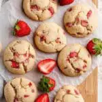 Using both gives your cookies a balanced rise—baking powder provides leavening while baking soda helps spread and chewiness, especially with the acidic cream cheese and strawberries. Together, they help create that tender but still structured cookie texture you want.